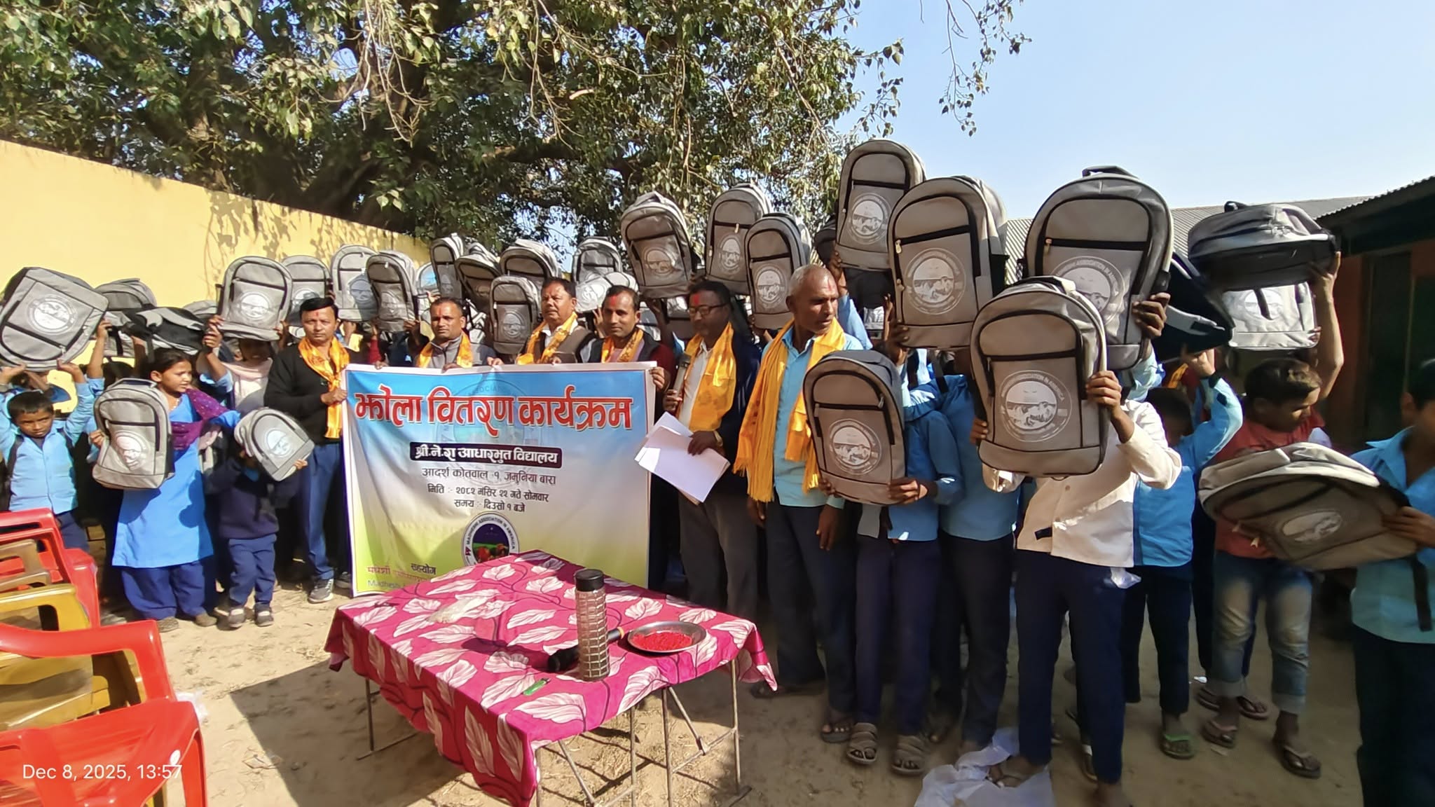 “20 Dec,2025, MAA organized a meaningful bag distribution program at Bara Shree Ne. Ra. School,kotwali,Bara to support students’ education and encourage their academic growth. This initiative provided essential learning materials, motivated young learners, and strengthened our commitment to uplifting the community through educational support and opportunities for a brighter future.”